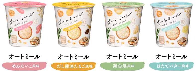 旭松食品株式会社(本社:大阪市、社⾧:木下博隆)は、2022年3月1日より、即席カップタイプの〝オートミール” 第3弾として「めんたいこ風味」、「だし醤油たまご風味」、「鶏白湯風味」、「ほたてバター風味」の4品を全国発売した。