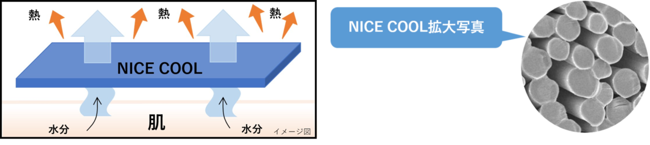 ①接触冷感素材「NICE COOL TM 」採用で、- 4℃ のひんやり冷感