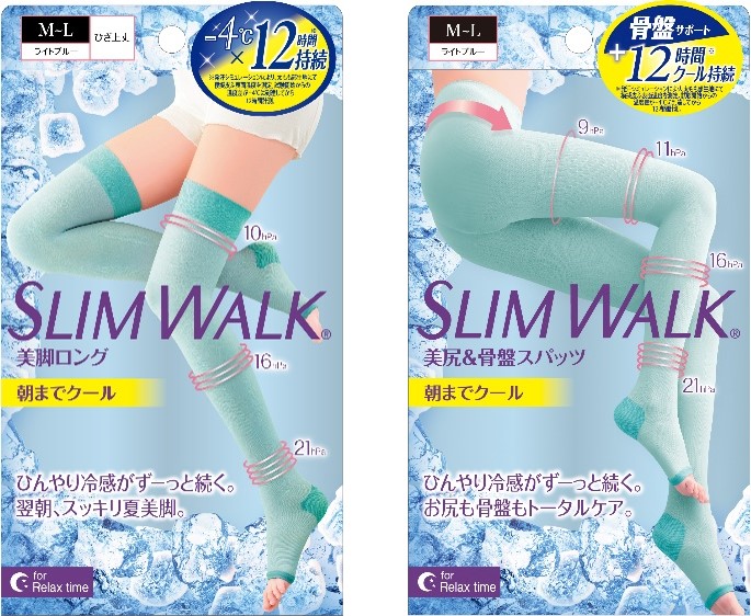 ピップ株式会社(本社:大阪市中央区、代表取締役社長:松浦由治)の着圧レッグウェアブランド「スリムウォーク」は、触れることで冷たさを感じる接触冷感素材「 NICE COOL TM 」を使用した「スリムウォーク 美脚ロング 朝までクール」と「スリムウォーク 美尻&骨盤スパッツ 朝までクール」を、2022 年 3 月 8 日(火)より全国のドラッグストア・量販店・ネット通販などで数量限定で販売を開始した。