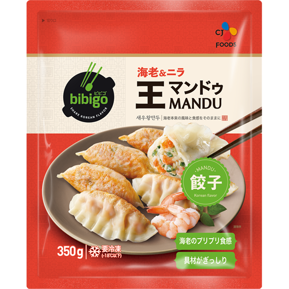 プリプリ食感の海老、ニラ、韓国春雨が入った大ぶりサイズの「bibigo 王マンドゥ 海老&ニラ」新発売