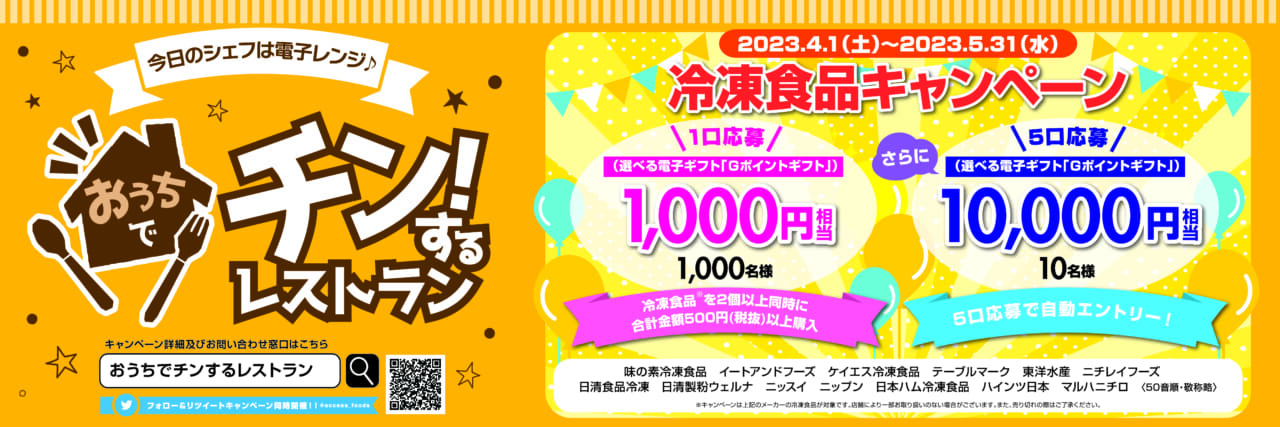 株式会社日本アクセス(所在地:東京都品川区、代表取締役社長:佐々木淳一)は、2023年4月1日より5月31日までの2か月間、冷凍食品販促企画『おうちでチン!するレストラン』を実施する。