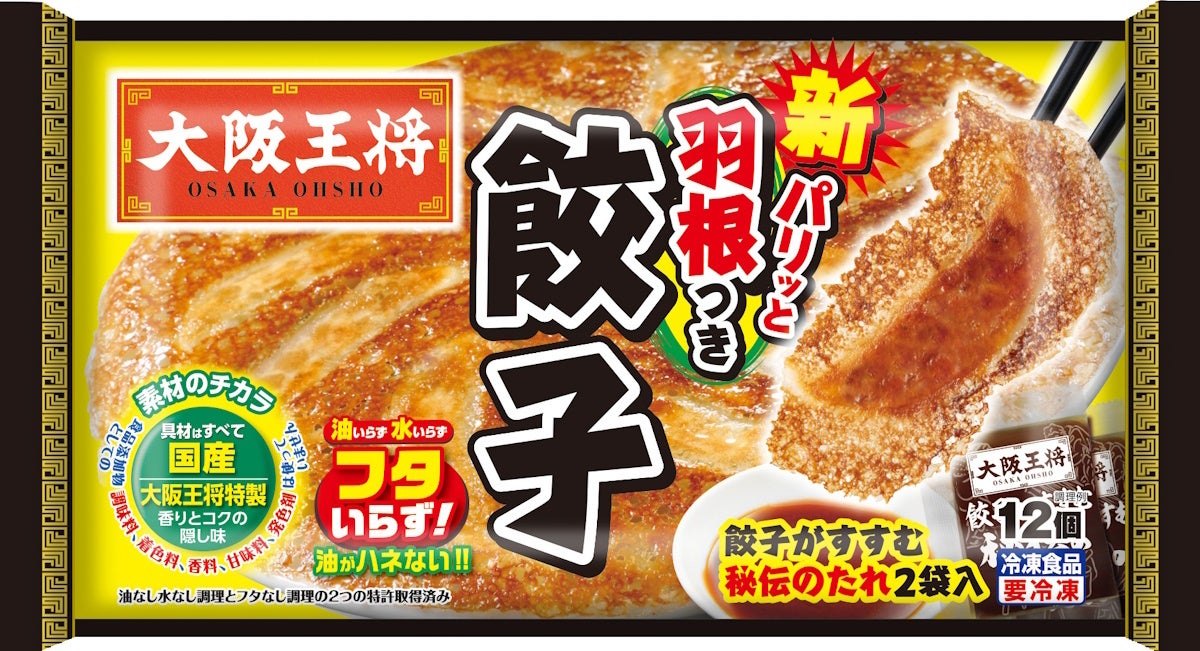 パリッパリの羽根のついた餃子の完成度をさらに高めるべくリニューアル。                                  隠し味の自家製焦がし味噌は、大阪王将の外食事業の職人と商品開発チームが試行錯誤を重ねて開発した。