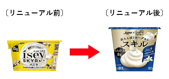 ニッポンハムグループの日本ルナ株式会社(東京都)は、濃厚クリーミーで脂肪0(ゼロ)*1の高たんぱくヨーグルト「Ísey SKYR(イーセイ スキル)」を「スキル」として12月18日(月)からリニューアルする。また、新フレーバー「スキル バニラ ぶどうソース ナタデココ入り」、「スキル バニラ 焦がしカラメルソース」の2種を同日より全国で発売する。