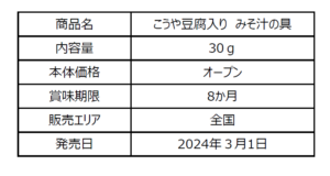 〜体にうれしい栄養素がたっぷり!〜 「こうや⾖腐⼊りみそ汁の具」新発売