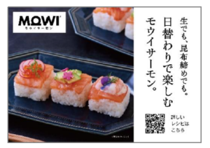 また販促物では「生でも、昆布締めでも。日替わりで楽しむモウイサーモン。」と打ち出す。これにより柵などより大きいサイズのMowi Salmonの購買を促し、顧客である流通企業様に貢献することを目標にしている。