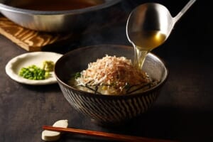 “あとのせ”鰹節には伝統製法で仕上げた本枯鰹節を使用しており、芳醇な香りとうま味を味わえる。