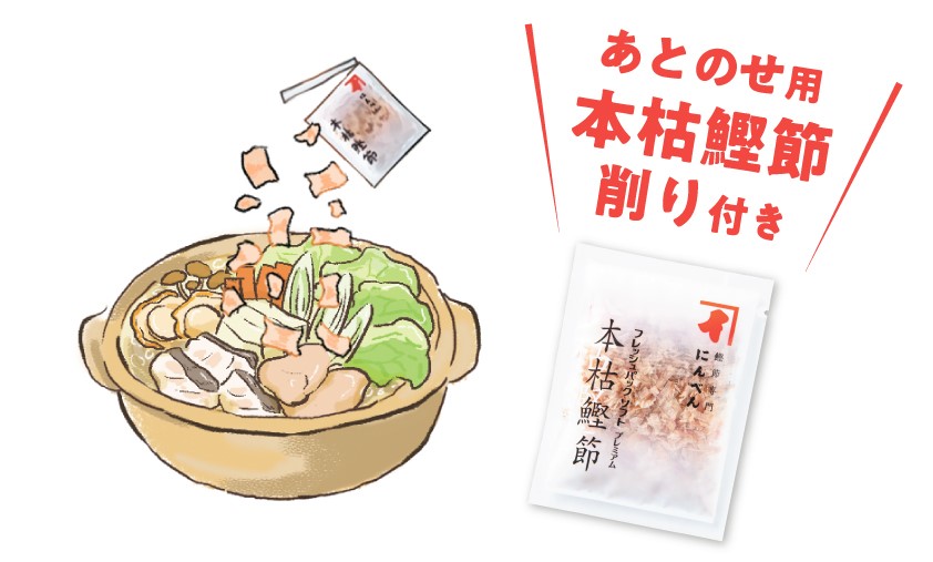 あとのせ鰹節が香る鍋つゆ 魚介の旨み |