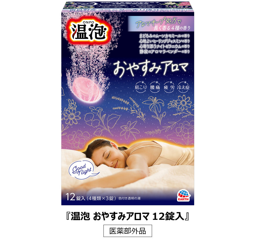 アース 2024.9.6 製薬、睡眠に着目!入浴で心地よい時間をつくる 4種アソートの炭酸入浴剤『温おん 泡ぽう おやすみアロマ』を発売!