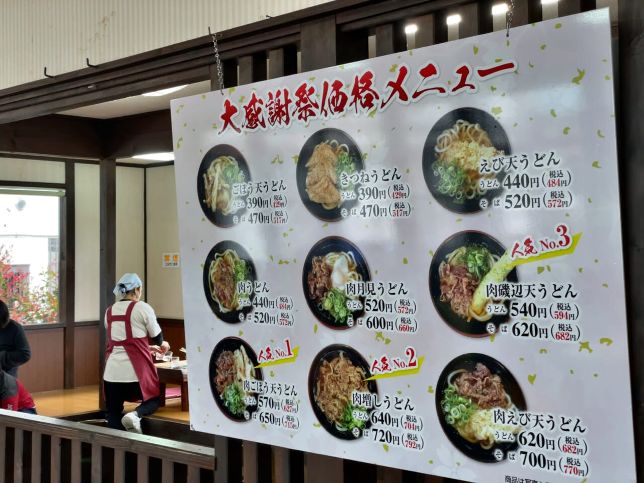 大好きな「ごぼう天うどん」はなんと税別390円!「えび天うどん」「肉うどん」は同440円である。もう少し値上げしてもいいのではないか、と大きなお世話をしたくなるほどの価格設定である。なお、「そば」は80円増し。