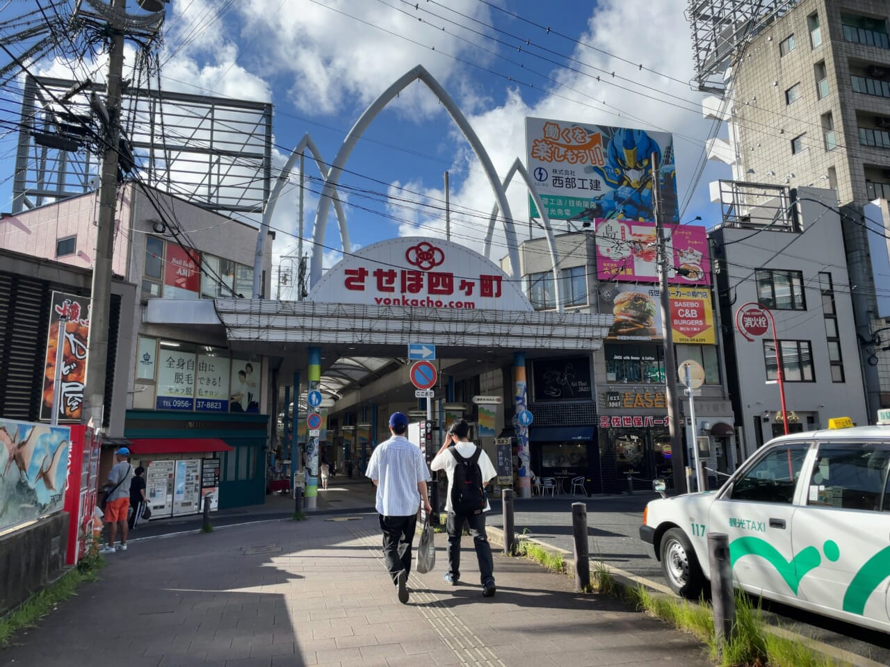 駅から徒歩10分のところにあるのは「させぼ四ヶ町商店街」。長さは960mで、「アーケードが切れ目なく続く」という点で日本一を誇る。そこに約200もの店舗が並んでおり、散策するだけでも楽しい。