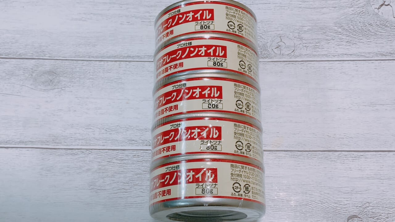 最近はかつおを原材料にした安価なツナフレークもありますが、肉のハナマサでは、マグロが原材料の「ツナフレーク」が5個パックで498円と、比較的安価に購入できます。