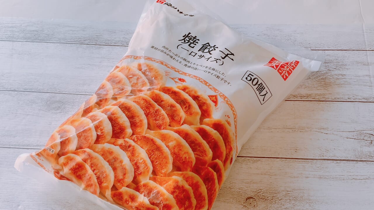 まず最初に取り上げたいのが、肉汁たっぷりの豚肉とキャベツを主体にした、素材の旨味が味わえる一口サイズの「焼き餃子」です。価格は50個入りで980円、1個当たりの価格は約20円となっています。冷凍餃子としては、“お買い得”とまではいかない価格帯ですが、肉汁がたっぷり入っており、おいしさの面で安価な冷凍餃子とは一味違うという印象を受けました。