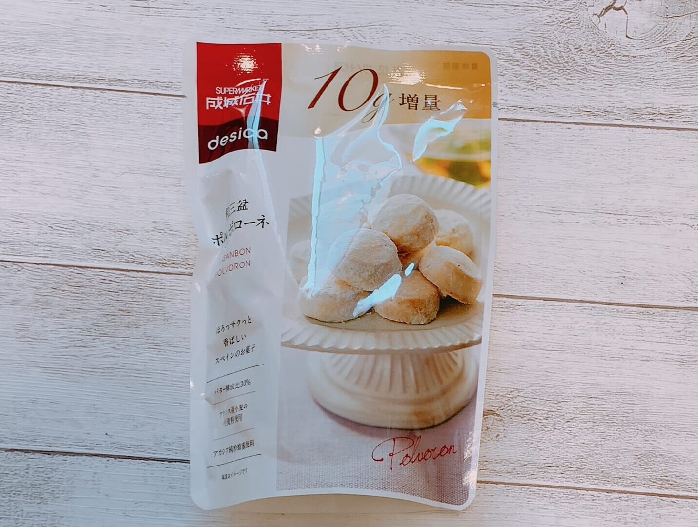 スペインのお菓子であるポルボローネ。成城石井ではさまざまなラインアップを展開していますが、今回購入したのは「和三盆」で、価格は499円(税抜)でした。今回は運よく10%増量のものを購入できました。