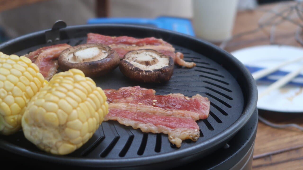 プレートでもう一つ重要なのは、「肉の下に脂が溜まらない構造」になっていることです。「やきまる」はなだらかな山型プレートに溝がついており、脂が自然に流れる仕組みになっています。適度な脂は熱を均等に伝え、焼き目をつけるのに役立ちます。