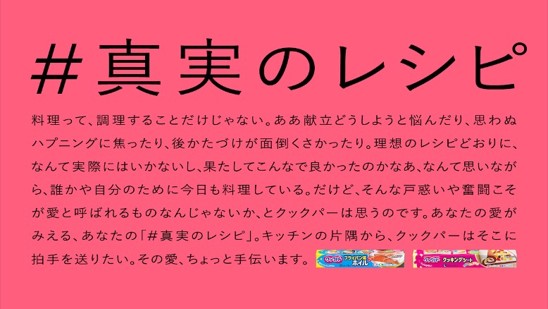 そうした中、サランラップやクックパーなどの家庭日用品を多く扱う旭化成ホームプロダクツがレシピの「行間」に隠れた真実に光を当てた「#真実のレシピ」を企画した。