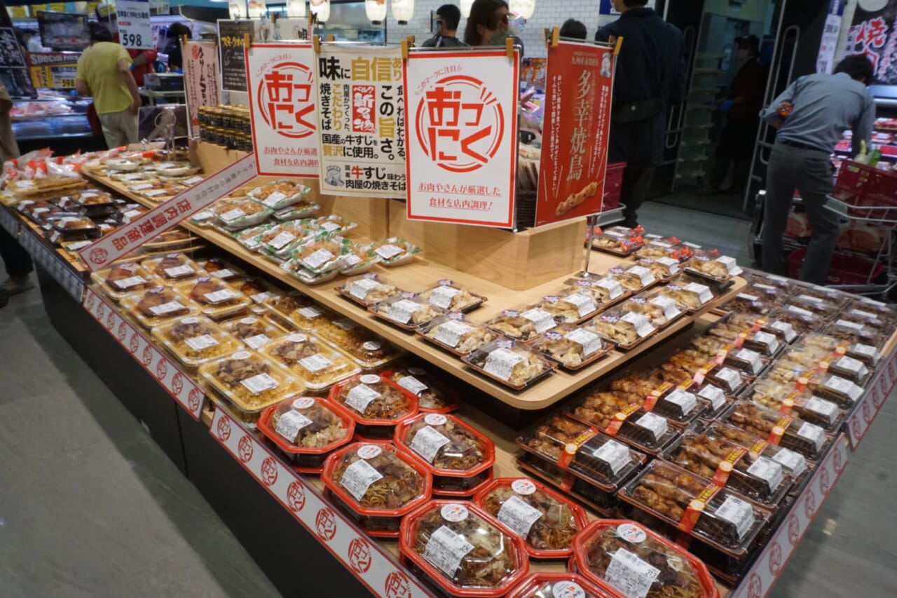 また、ベルクも生鮮素材の総菜化を推進している。横浜川和町店の精肉と鮮魚売場では、店頭で扱う素材を使った肉総菜や魚総菜を集約し、主通路上でコーナー化。多くの来店客が足をとめていた。