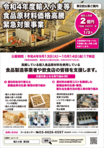 申し込み方法はHP(https://www.lapita.jp/maff/yunyu-komugi/2022/second/index.html)より所定のフォーマットをダウンロードし、必要事項を記載、必要書類を添えてネットから申請。公募選定委員会による採択が決定したら改めて補助金交付申請書類を提出する。補助金交付決定の知らせは11月以降を予定しているという。