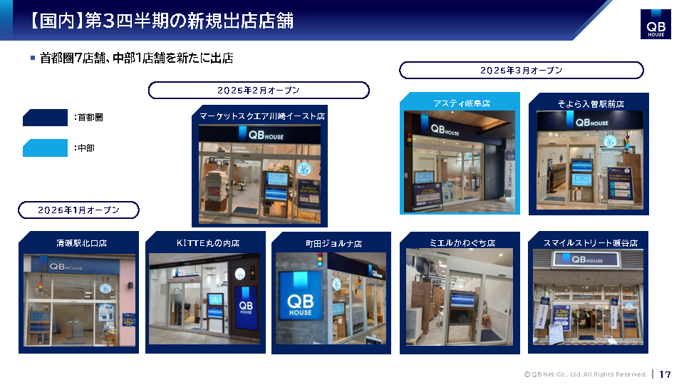 国内では現時点で首都圏(1都3県)に300店以上を展開している。すでに出店している都道府県においても、既存店に加えて800店以上の出店余地があるとみている。内訳は重要出店エリアである北海道(札幌)、東北(仙台)、関東(東京・神奈川・埼玉・千葉)、東海(愛知)、関西(大阪・兵庫・京都)、中四国(広島・岡山・香川)、九州(福岡)で500店、それ以外の出店エリアで300店としている。