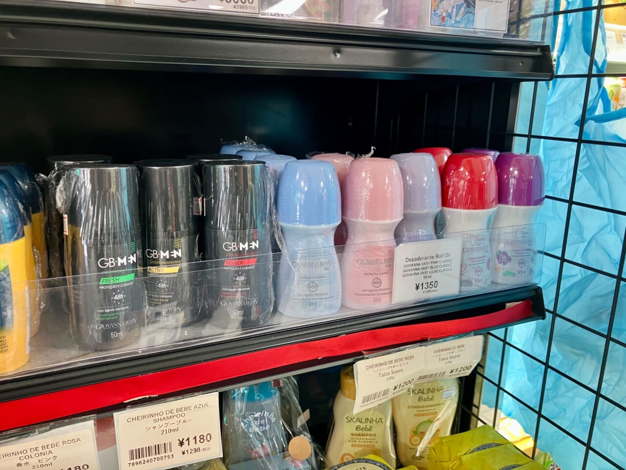 売場を見ていくと、全体的には食品が中心ではあるものの、店内入口付近には生活雑貨・日用品の売場を展開。傘やアクセサリーのほか、ブラジルの書籍やパーティーグッズなどが並ぶ。ブラジルで有名な「ジオバンナ ベイビー」ブランドの制汗剤や石鹸などは、とくに人気が高いという。