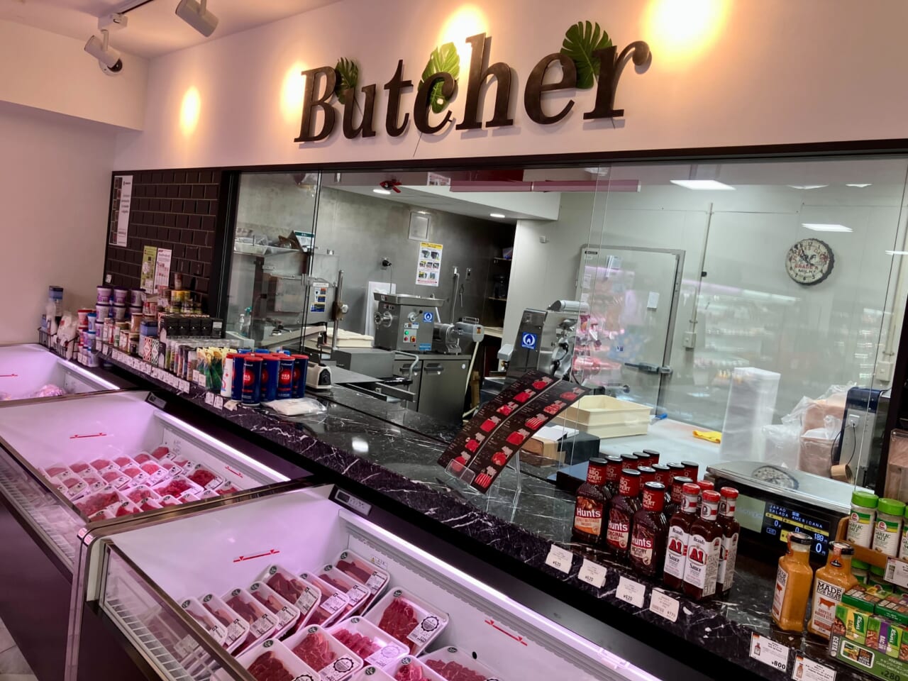 売上高構成比の高い精肉は対面カウンターを導入し、バーベキュー用のカット肉や、ブロック肉などを提供する。扱う精肉は主にオーストラリア産やメキシコ産が中心である。