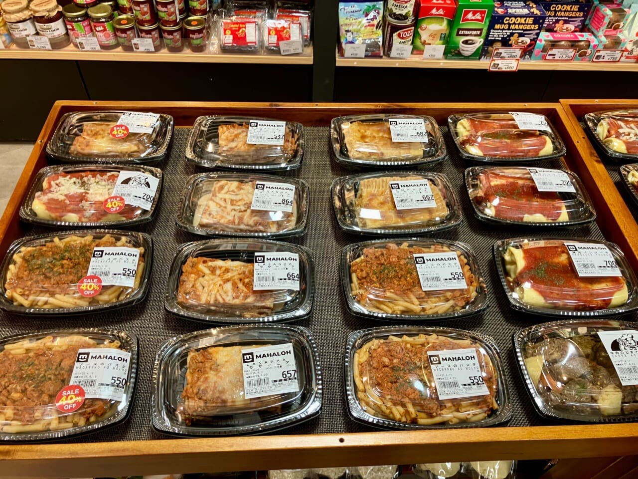 総菜売場では、ラザニアやソースパスタ、チキンパイなどを販売しており、これらの商品はすべて店内で製造している。