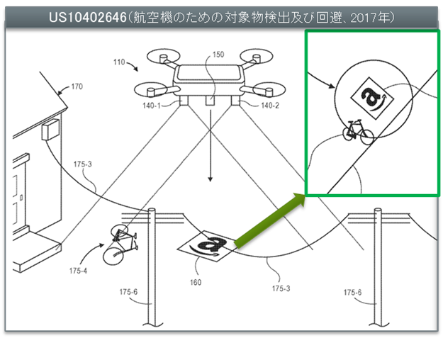 図表② アマゾン名義の米国特許10402646(航空機のための対象物検出及び回避)の説明図