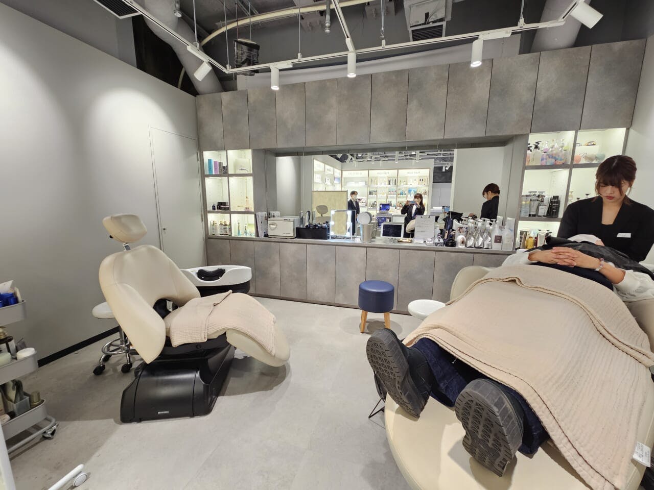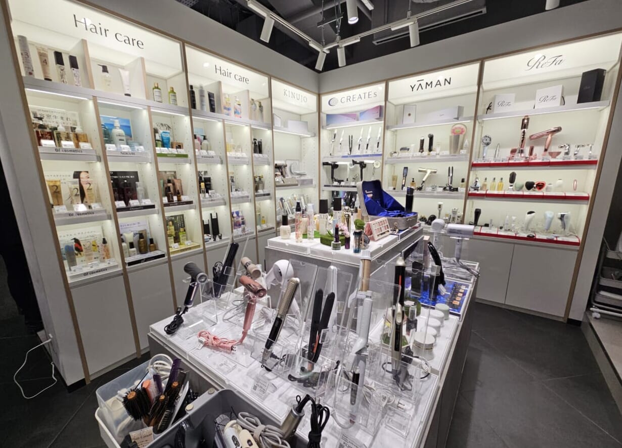 美容家電は10万円を超える脱毛器のほか、ドライヤーやヘアアイロンなど数万円以上の商品を試すことができる。シャンプー・トリートメントにおいては、店内に設置されたシャンプー台で美容師の資格を持つスタッフによる施術を受けることが可能だ。