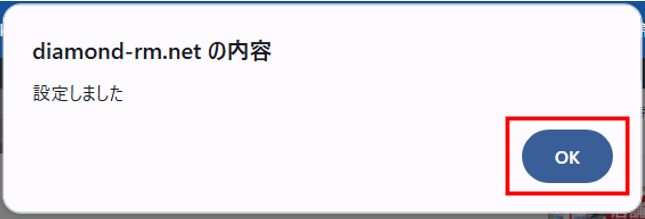 ⑤「設定しました」のダイアログボックスが表示されるので「OK」をクリック