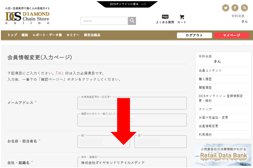 ③会員情報変更(入力ページ)が開くので、1番下までスクロール