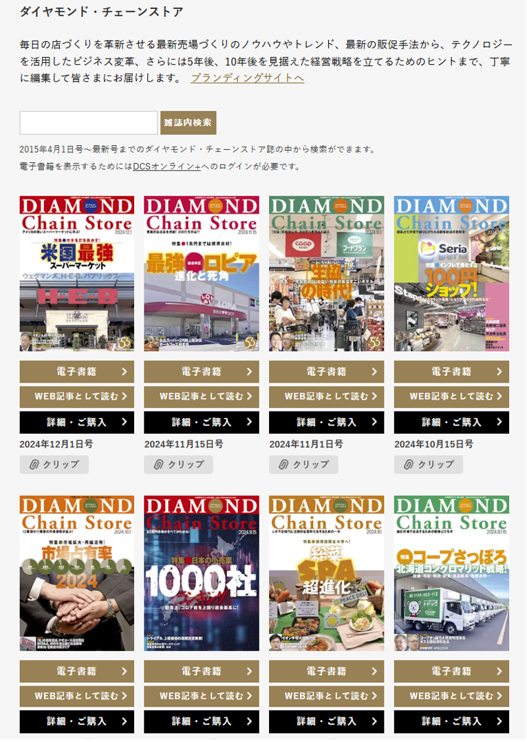 電子書籍の閲覧方法をご説明します。ダイヤモンド・チェーンストア誌の最新号から2015年4月号までのバックナンバーを電子書籍形式で閲覧いただけます。