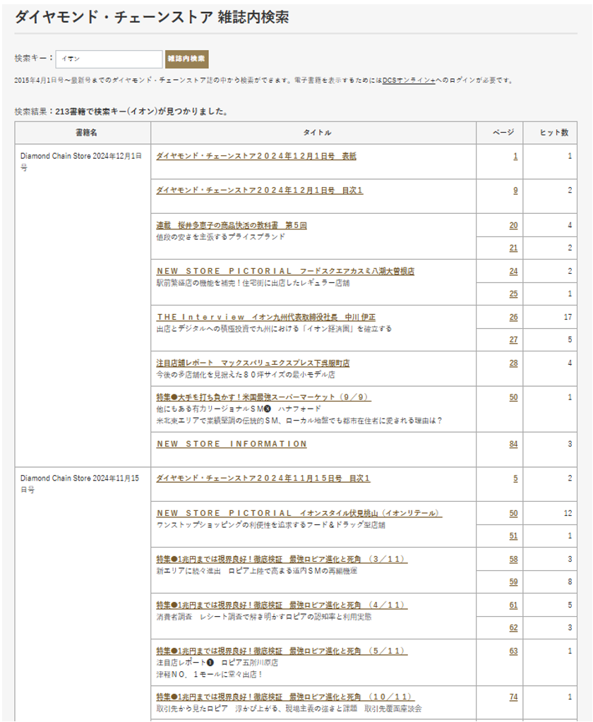 ④ダイヤモンド・チェーンストア一覧が表示される