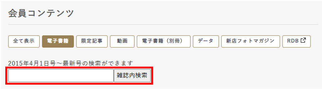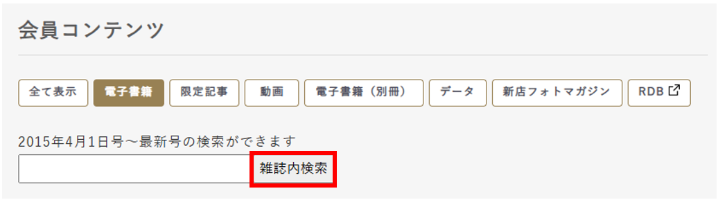 ④「会員コンテンツ」内の検索窓にキーワードを入力