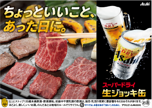 また家でもお店のような生ビールが楽しめる価値を訴求するYouTube企画や、食と連動した家飲みを訴求する店頭用POPも展開し、小ハレの日ニーズの獲得と継続購買につなげる。さらに、コロナ禍以降広がったアウトドアニーズに対応し、アウトドアでの飲用を訴求するPOPや蓋が開けやすくなるオープナーの景品も展開し、新たなトライアルの獲得をめざす考えだ。