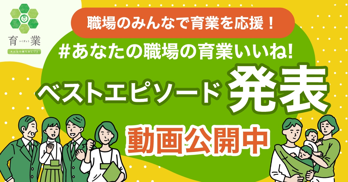 育業を後押ししてくれたエピソードを募集し、投票で選ばれたエピソードをもとに動画を制作しました。動画を広く発信することで、育業いいね!と思える職場の雰囲気づくりにつなげていきます。詳細はこちら