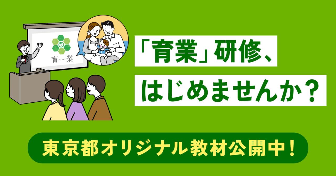 「育業」とは育児休業の愛称です。東京都は、育児は「休み」ではなく「大切な仕事」と考える愛称「育業」の理念を浸透させ、多様な主体と連携して、育業を社会全体で応援する気運醸成に取り組んでいます。