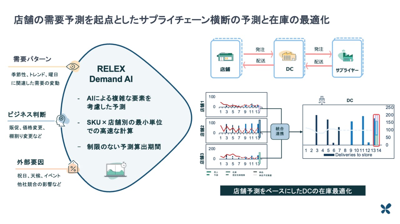 RELEXは、こうした不確実な供給環境に対し、「需要予測」「補充計画」「可視化と改善」の3つの領域からアプローチする統合プラットフォームを提供している。