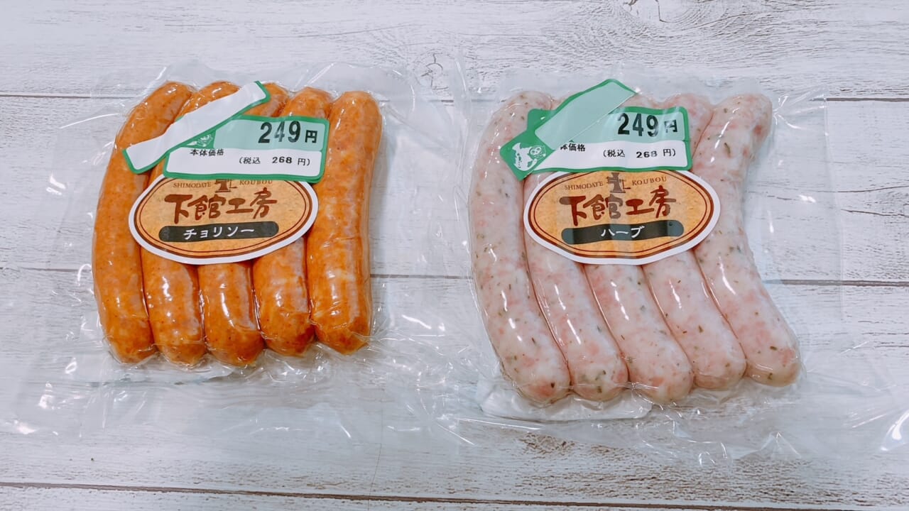 さらに紹介したいのは、「下館工房」の「ウインナー」です。今回購入したのは、「チョリソー」と「ハーブウインナー」です。いずれも同498円の商品を半額の同249円で購入することができました。