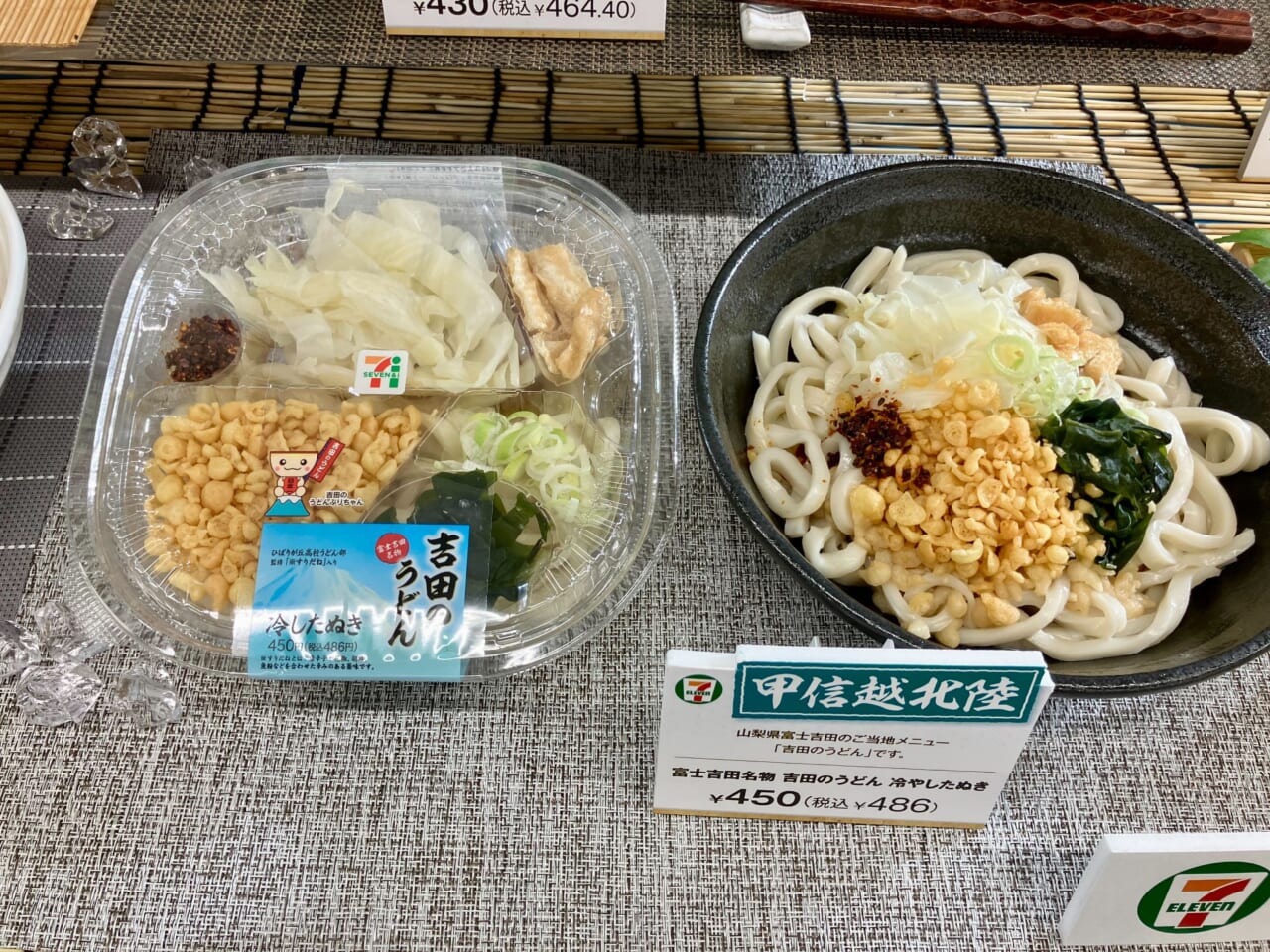 甲信越・北陸地区では、山梨県富士吉田市のご当地うどん「吉田のうどん」をイメージした富士吉田名物 吉田のうどん冷やしたぬき」(486円)を販売する。つゆには5種類のだしを使用し、キャベツ・油揚げ・天かすなどをトッピングしている。