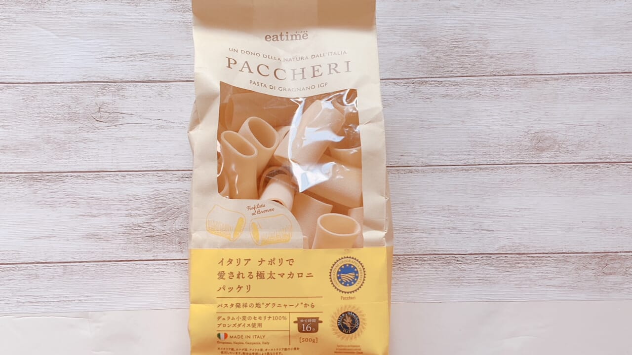 最後に紹介したいのが、他店では見かけることの少ない「イタリア ナポリで愛される極太マカロニ パッケリ」です。産地や製法、品質を保証するIGPに認証された本格マカロニであるeatimeのパッケリは、税込645円。500g入りと考えると、一般的なパスタやマカロニより、やや高価な印象です。ゆで時間も16分と長めなため、調理の手間もかかってしまいます。