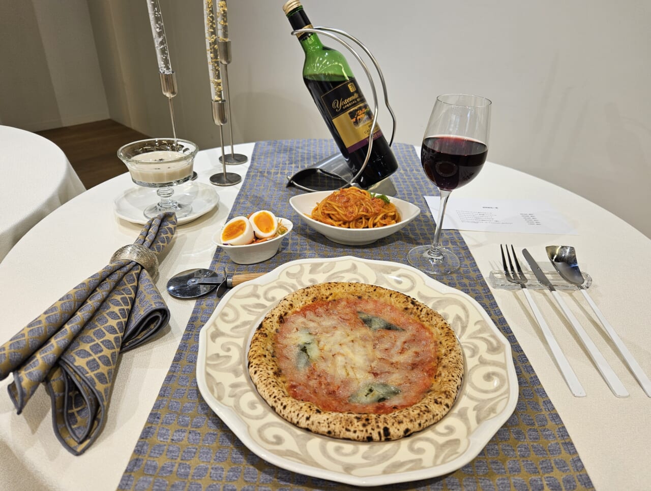 手前はセブンプレミアム ゴールドの「金のマルゲリータ」、奥のパスタは「金の蟹トマトクリーム」