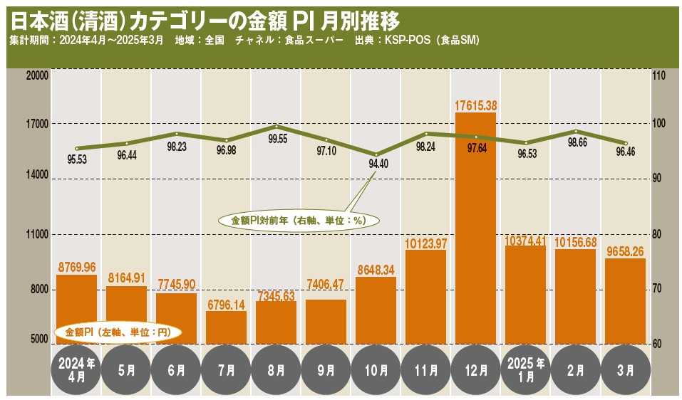 日本酒(清酒)カテゴリーの金額PI 月別推移