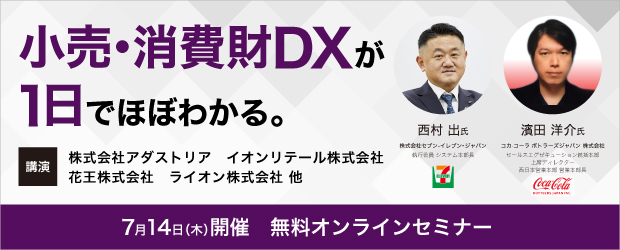経済・消費動向の急激な変化、持続可能性重視への転換など、不確実性の高いビジネス環境の中、小売・消費財業界は、デジタル化によるデータ起点の取り組みが不可欠になっています。基調講演では、株式会社セブン‐イレブン・ジャパン様、コカ・コーラボトラーズジャパン株式会社様をお招きし、多様化するお客様のニーズに迅速に応え、新たな価値を生み出すためのDXへの取り組みをどのように加速させているかご紹介いたします。