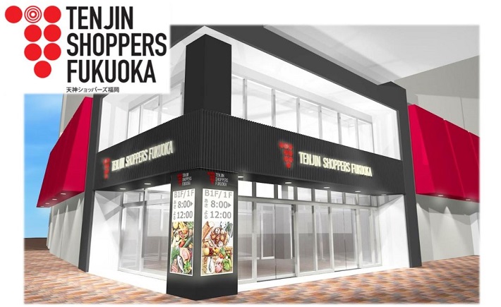 イオン九州は福岡市の繁華街、天神地区にある「イオンショッパーズ福岡店」をオフィスとの複合施設に改装する。地下1階から地上4階を商業施設「天神ショッパーズ福岡」(愛称)として4月25日に先行オープン、地上5階から8階は今秋をめどにオフィススペースに改装する。