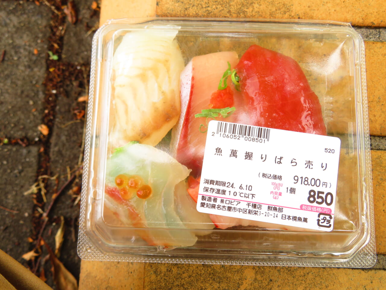 鮮魚売場には8尺で対面の「握りずし」コーナーを導入しており、売場に華やかさがある。扱う具の数は約30。「本マグロ大トロ」「穴子」(500円)、「本マグロ中トロ」「イクラ」(300円)、「本マグロ赤身」「赤貝」「ヒラメ」(200円)、「生サーモン」「ブリ」(150円)など価格帯に幅を持たせている。お客の反応も良く、週末は人が途切れることなく購入しており、この売場がロピアの看板になりつつある。