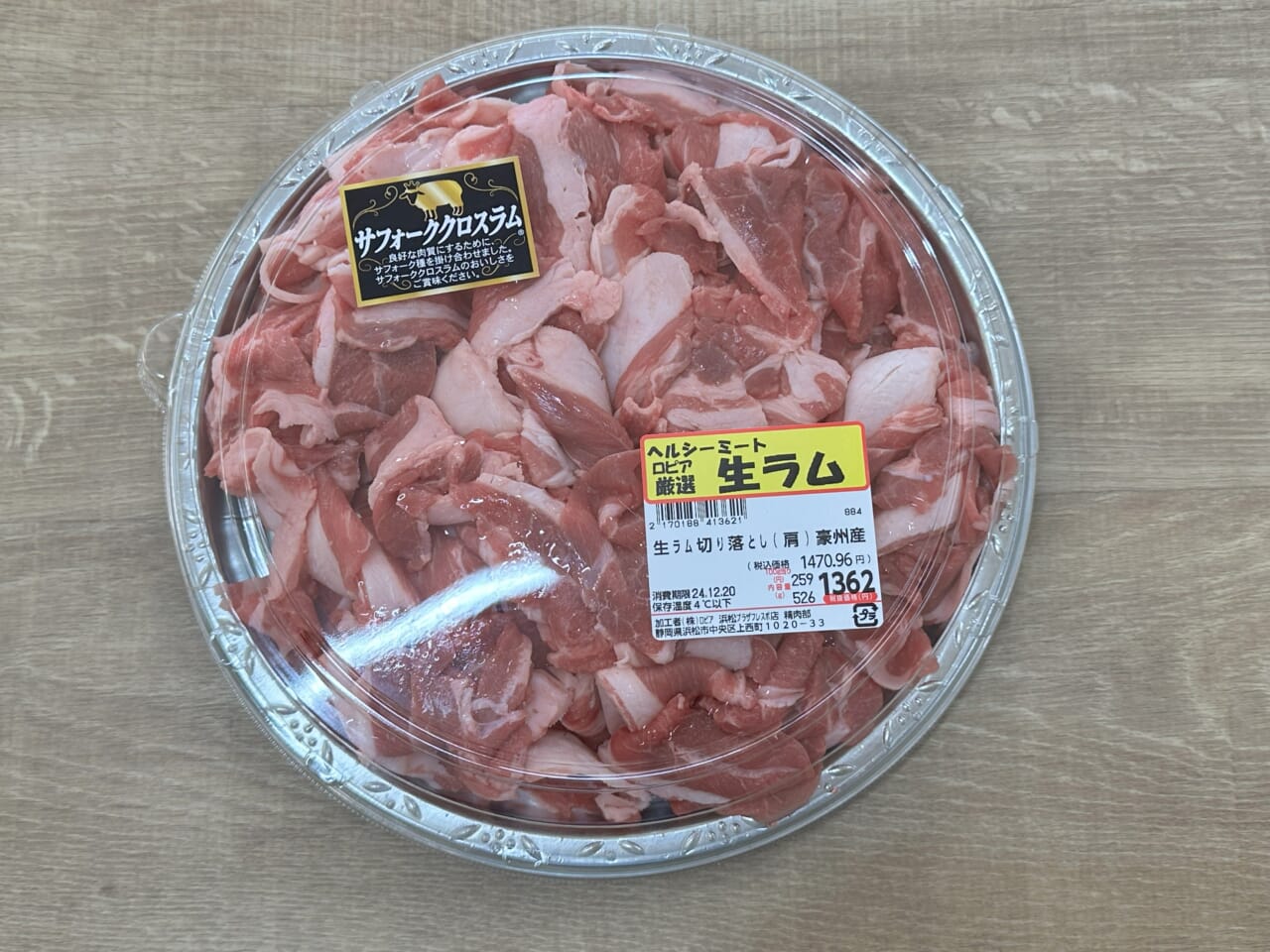 別の角では、カテゴリー創造を図る形で生ラムの大パックをPOPで商品特性を説明に加えながら、ボリューム陳列で訴求を行っていた。切り落としに加え、部位別でのステーキや焼き肉用の商品を揃える。