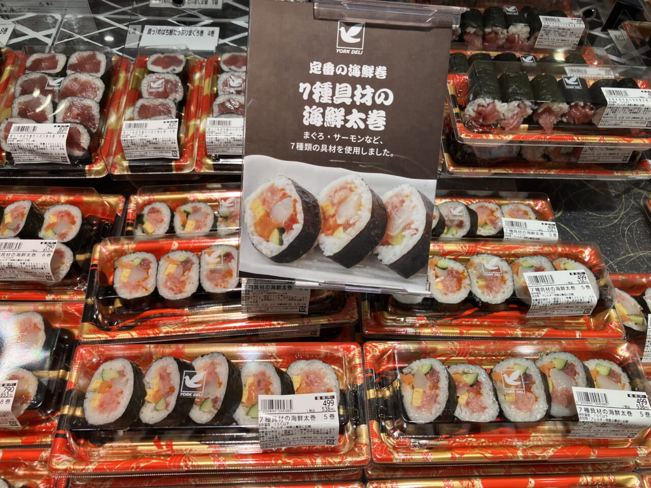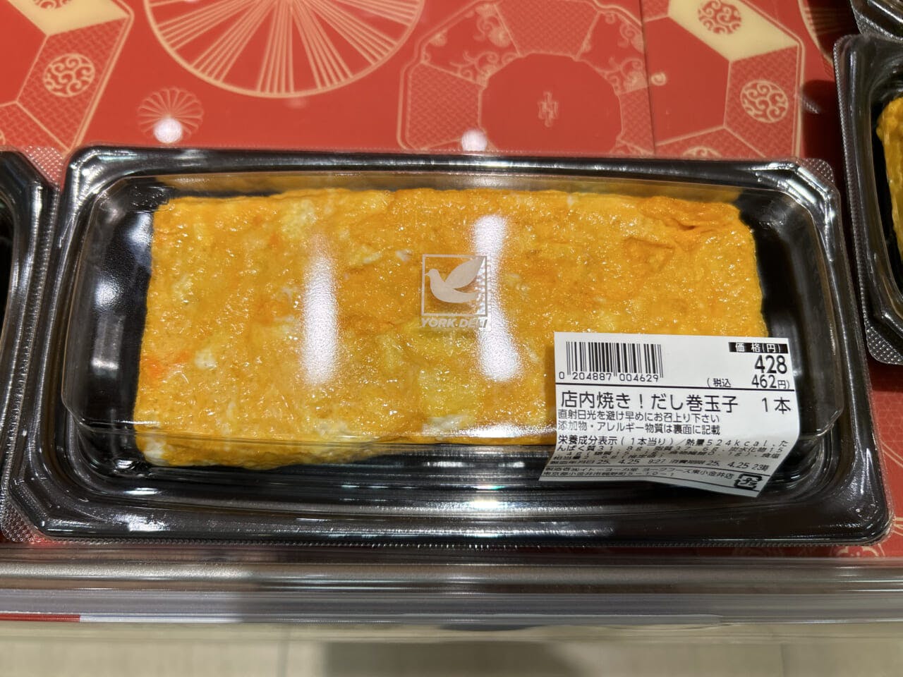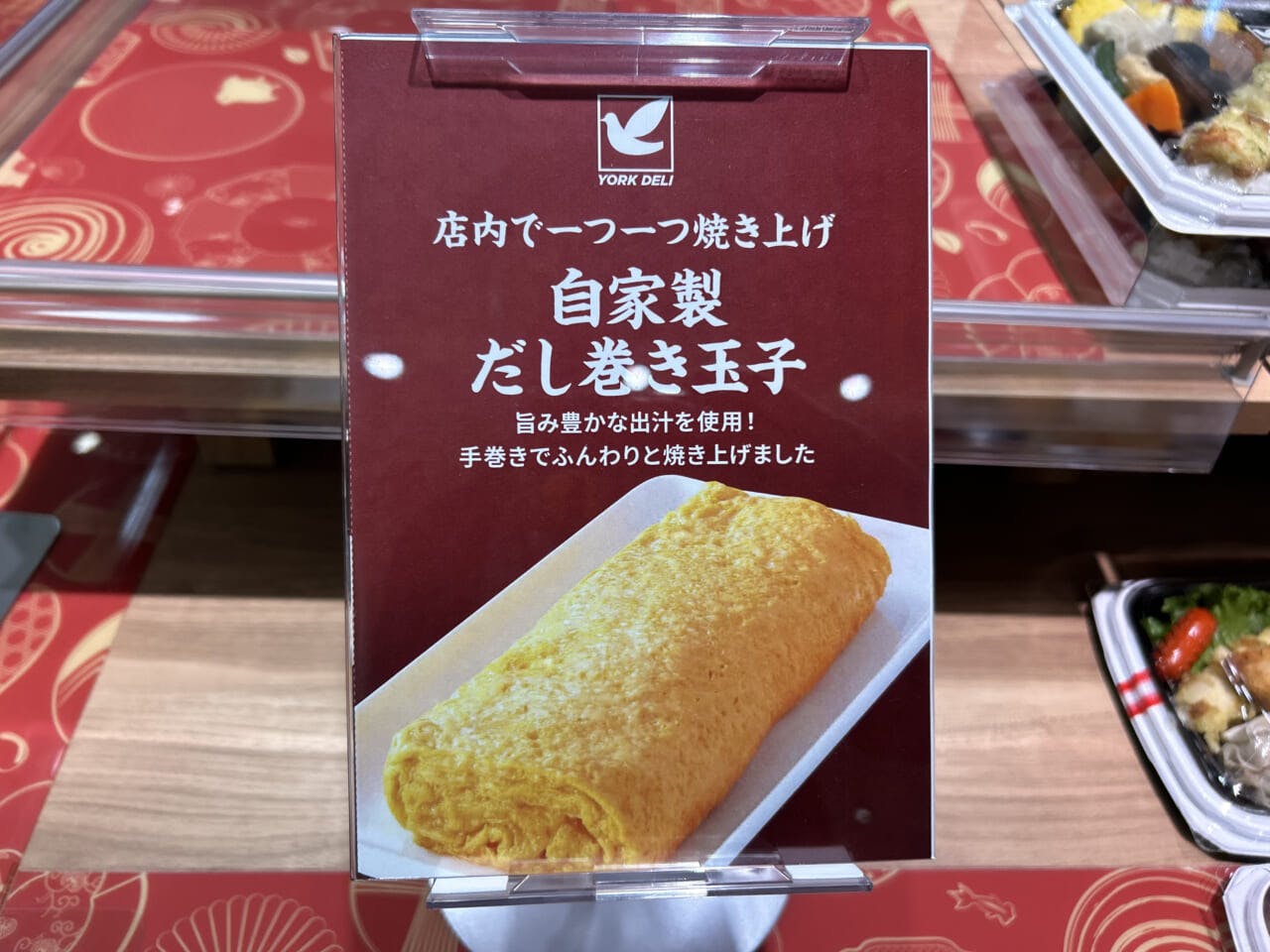 即食需要への対応のメーンとなる総菜売場では、24年5月に誕生したイトーヨーカドー・ヨーク店舗の総菜ブランド「ヨーク・デリ」を軸に商品を提案。看板商品である店内焼き上げの「だし巻き玉子」(ハーフ219円、1本428円)などでは、シズル感のあるデザインと文言のPOPを添えて訴求していた。
