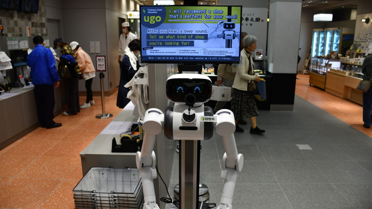 さらに、集中レジエリアでは、業務DXロボットの開発を手掛けるugo(東京都/松井健社長)が開発したロボスタッフ「ugo Pro」を、接客案内ロボットとして採用している。同ロボットの商業施設への正式採用はエキュート秋葉原が初となる。