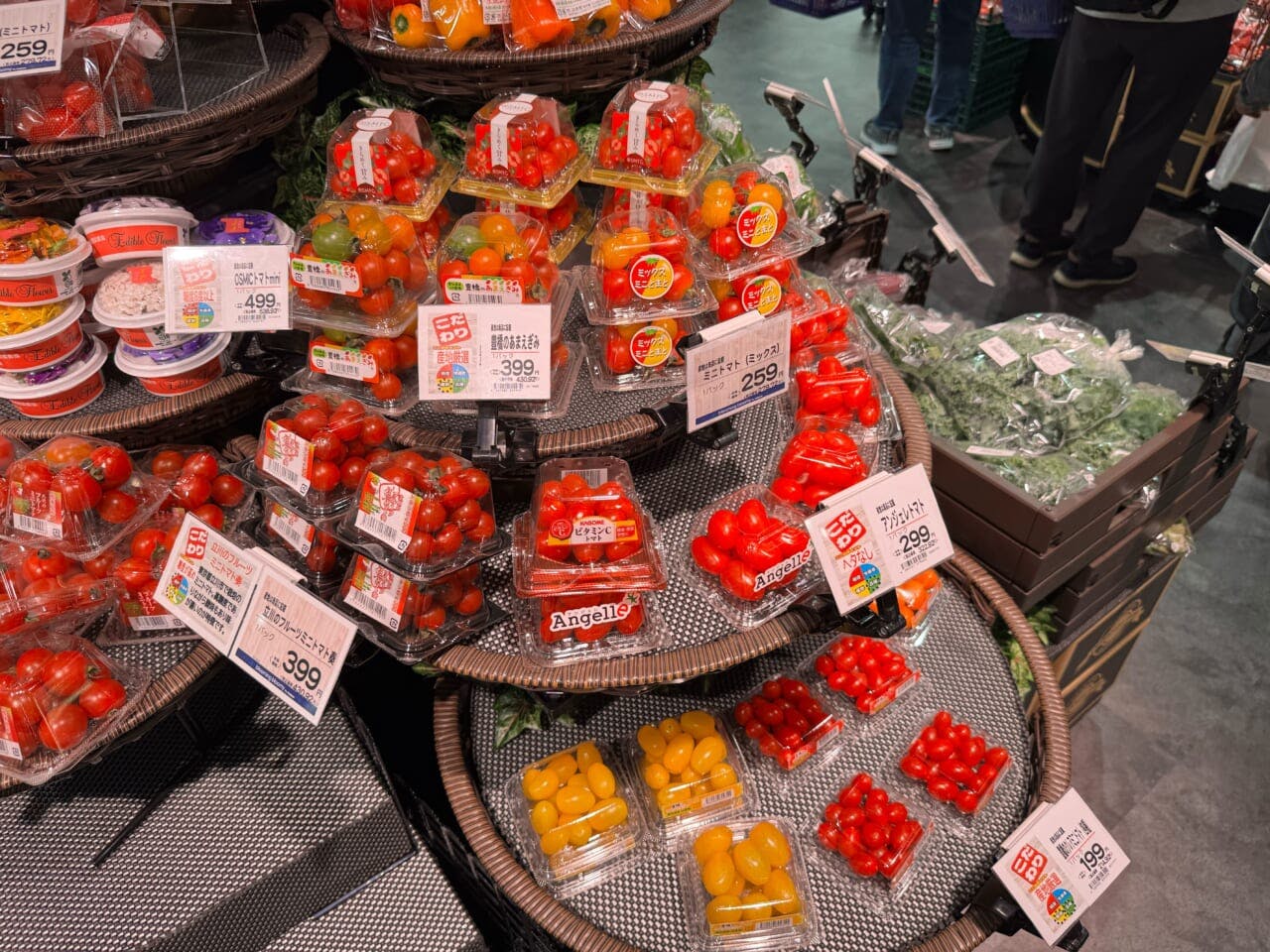 「店の顔」と位置づける青果では、糖度・熟度・産地(生産者)・品種で厳選した果物を「こだわりま撰果」の名称で販売する。たとえば、ミニトマトは産地を絞った「豊橋のあまえぎみ」「立川のフルーツミニトマト奏」(税抜各399円:以下、すべて税抜価格)のほか、高糖度の「OSMCトマトmini」(499円)などをラインアップする。