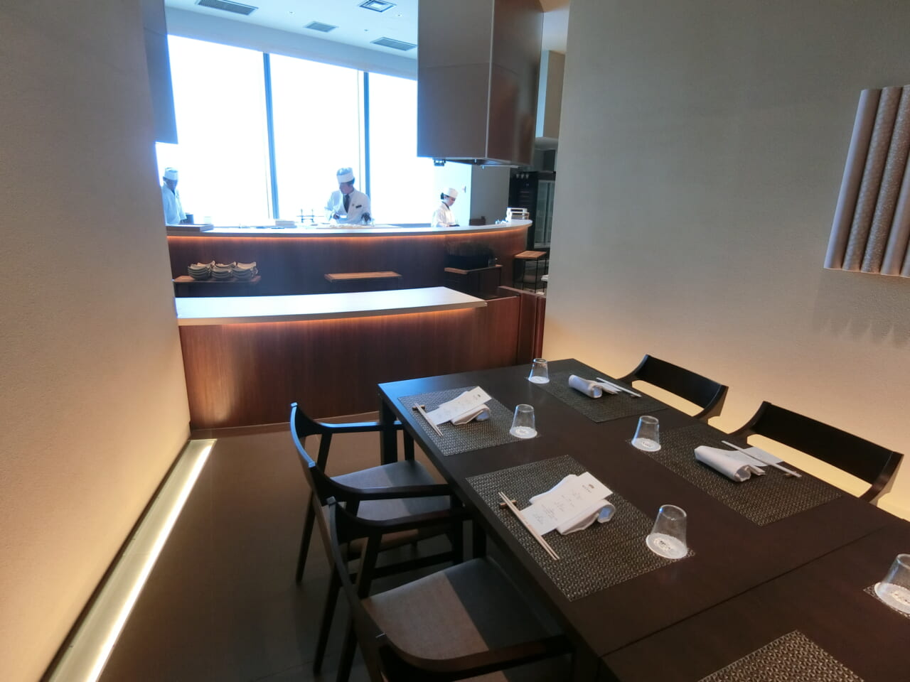 29階の「割烹 BUTAI」は、江戸の料理をテーマにした高級和食店で、結婚式場運営で知られる「八芳園」が手がける。店内はカウンター席と6つの個室から構成されており、奥の個室は室料だけで3万円に設定されている。
