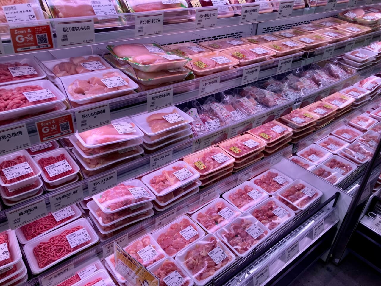 精肉売場には、マルエツのオリジナルブランド「優夢牛」や「みちのく森林鶏」をはじめ、少量目から中量目のパック商品を中心に揃える。